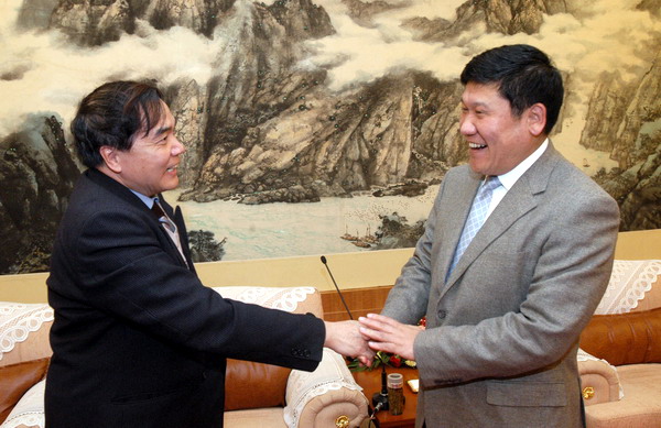 5日下午,李憲生市長一走進武漢市政府禮堂會客廳就緊緊握住了陶宏開教授的手,連聲說:“陶教授,您好,久仰大名,久仰大名。您是章開沅老師的學生?”李憲生市長開門見山認了這個師兄,二人的愉快談話從老師章開沅先生開始。