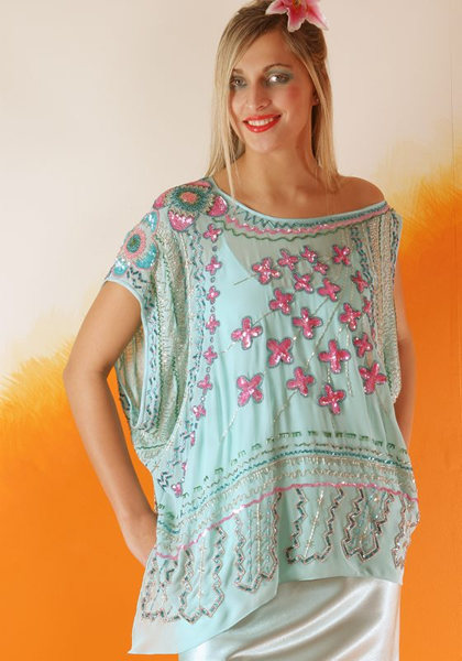 桑德拉的時(shí)裝把創(chuàng)意和個(gè)性放在商業(yè)考慮之上。她的招牌衣裙是柔軟型的衣裙,她用色彩強(qiáng)烈而明亮的雪紡綢、真絲、薄紗、天鵝絨等為面料。她深深地被世界上各個(gè)不同民族的文化所傾倒,并從大自然中吸取靈感,創(chuàng)造出蝴蝶、貝殼、羽毛等形狀的圖案。她喜歡在服裝設(shè)計(jì)中使用硬襯布和采用小珠串作裝飾。
