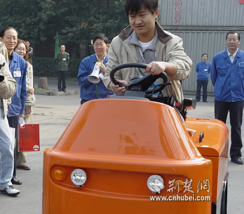記者試行電動(dòng)叉車(chē)