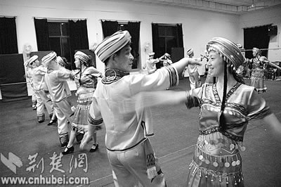 這是宜昌市西陵區(qū)窯灣鄉(xiāng)的農民正在緊張排練巴山舞的情景。他們是經過中南六省相關部門聯(lián)合商定,代表中南六省在本月福建省泉州市,參加中國農民體協(xié)和國家體育總局舉辦的“全國地方特色體育展示”活動。