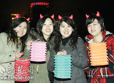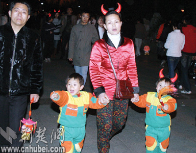 中山公園里,一對(duì)對(duì)情侶紛紛登上湖中的小舟,在燭光中許下愛情的誓言。25歲游客小敏舉著燈籠,偎依在男友的懷里,羞澀地笑著告訴記者:“今天我同意嫁給他了,這是我們金豬年最大的喜慶!