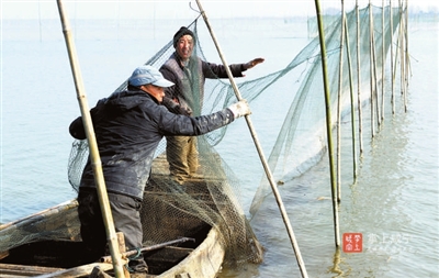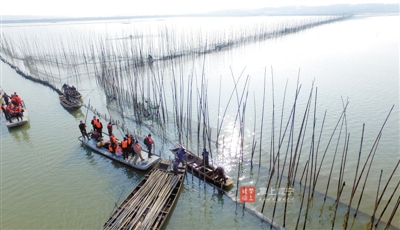 船行、竹起、網(wǎng)收……一湖碧波,微瀾蕩漾。
