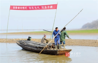 湖邊,“‘兩湖拆圍’,功在當(dāng)代利在千秋”的紅色條幅隨風(fēng)飄蕩。村支書楊繼平看著一派熱火朝天的場面,對完成村里9700畝“拆圍”任務(wù)信心滿滿。