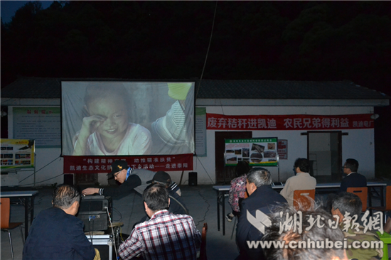 當(dāng)晚,在電影開始前播放了由陽光凱迪新能源集團(tuán)提供的秸桿回收與利用宣傳片,讓農(nóng)民朋友了解產(chǎn)業(yè)開發(fā)“變廢為寶”帶來的收益,播放了由赤壁市普法工作辦公室拍攝制作的《留守兒童》公益廣告片和邵陽花鼓戲《兒大女大》,現(xiàn)場還發(fā)放了由省扶貧辦編印的《扶貧到戶,畫說政策》宣傳手冊、秸桿回收利用好處多等資料,讓廣大農(nóng)民群眾進(jìn)一步了解黨和政府的扶貧政策,真正享受到政策的好處。電影下鄉(xiāng)活動猶如一道文化大餐,不僅給群眾送去歡樂,而且還豐富了人民群眾的業(yè)余文化生活。