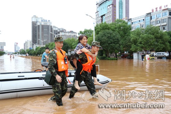 湖北日報網(wǎng)訊(通訊員何智利、何彥卿、記者江卉)8月11日20時至8月13日12時,咸寧地區(qū)普降大到暴雨,局部特大暴雨量達204.7毫米。強降雨導致城區(qū)咸寧大道、銀泉大道、玉泉街、書臺街等多條城市主干道嚴重積水,造成嚴重內(nèi)澇。8月13日13時許,武警咸寧支隊接到任務后,支隊長廖光明率50名官兵,出動車輛6臺、救援繩20根、皮劃艇3艘,轉(zhuǎn)移受災群眾300余人,轉(zhuǎn)運受損拋錨車輛20余臺,疏通城市主干道5條。截止13日18點,武警官兵還在一線救援。