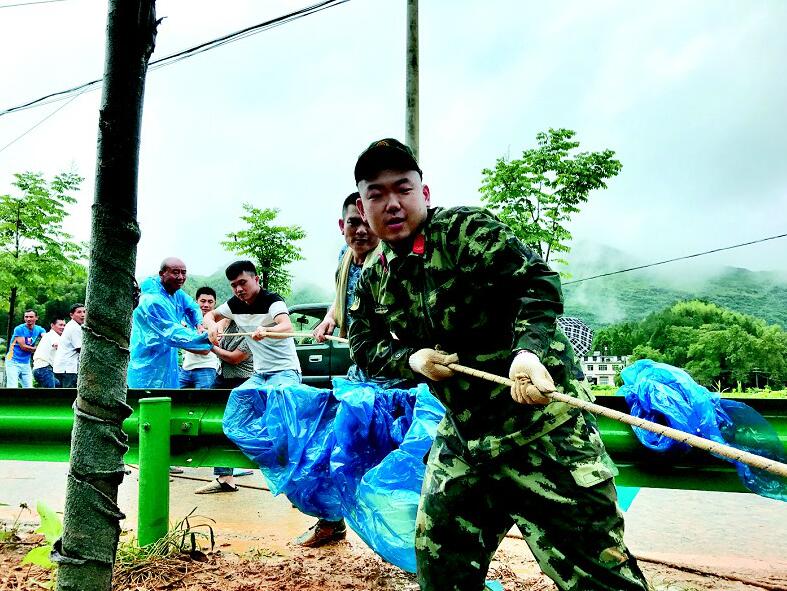 昨日早上8時許,記者聞訊趕到現(xiàn)場,消防官兵正在擺渡運送村民。記者了解到,該河為佛嶺河,平時就是一條水溝,雖然河面只有10多米寬,但是洪水十分湍急,兩名消防隊員合力掌舵控制方向,避免救生艇被洪水沖翻。