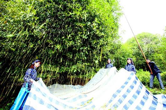 圖為:昨日,村民在一棵百年古桂樹下打桂花。當(dāng)天,“中國香谷桂花小鎮(zhèn)”桂花旅游節(jié)在咸寧市咸安區(qū)桂花源景區(qū)開幕。桂花源風(fēng)景區(qū)是全國最大的古桂群基地,樹齡50年到100年的桂樹達(dá) 2000余株,百年以上古桂樹有200余株。游客們穿行在馨香四溢的桂樹林里,一邊欣賞美景,一邊體驗打桂花的樂趣。