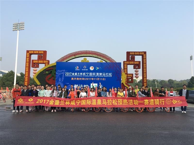 湖北日?qǐng)?bào)網(wǎng)訊(全媒體記者張文龍、通訊員盤麗嬋)29日,咸寧市40名志愿者圍繞咸寧馬拉松途經(jīng)的重要道路騎行一圈,為即將于11月11日開跑的咸寧國(guó)際溫泉馬拉松預(yù)熱。