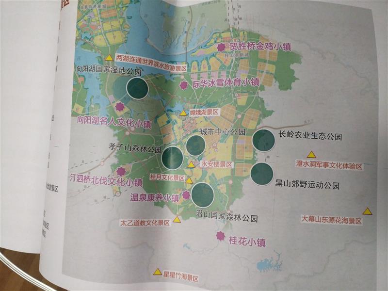 六園:向陽湖國家濕地公園、孝子山森林公園、潛山國家森林公園、城市中心公園、黑山郊野運(yùn)動公園、長嶺農(nóng)業(yè)生態(tài)公園。