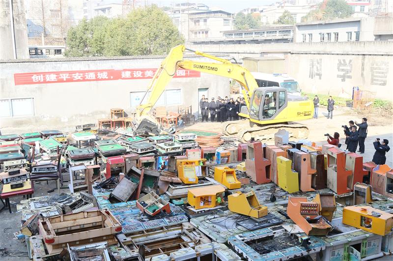 湖北日報訊(記者陳嶼、通訊員劉建平、吳忠勇)12月20日上午10時許,隨著指揮人員一聲號令,從通城各鄉(xiāng)鎮(zhèn)收繳的152臺涉賭電子游戲機、186臺麻將機被集中銷毀。