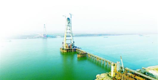 圖為:建設(shè)中的嘉魚長江大橋