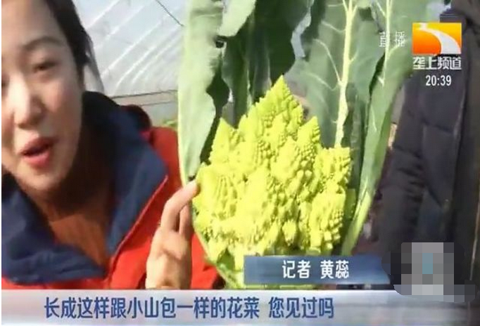 花球綠黃色,圓錐形似寶塔,上百個(gè)小花球還密密麻麻的跟螺旋一樣排列。記者黃蕊問(wèn)到,這花菜長(zhǎng)得稀奇古怪的,倒是頭一回見啊。