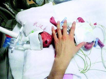 當(dāng)晚,圓圓降生??伤挥谐扇税驼拼笮。w重810克,身長32厘米,屬于“超低出生體重兒”“超早產(chǎn)兒”。她的皮膚呈青灰色,沒有呼吸和反應(yīng),只有不規(guī)則的、微弱的心跳。