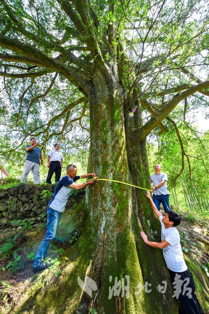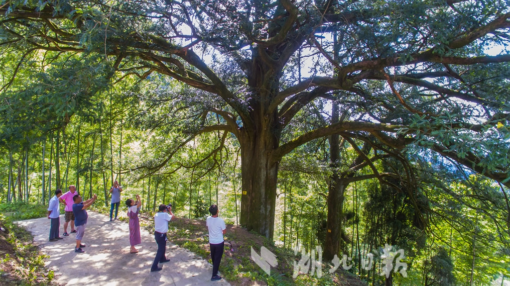 湖北日報訊(記者 陳勇 通訊員汪佳、黎志遠)7月16日,在崇陽縣港口鄉(xiāng)大東港村,兩棵古香榧樹歷經千年仍枝繁葉茂、碩果累累,令游客驚嘆不已。這棵雌性香榧樹高25米,樹冠面積約有650平方米,胸圍4.9米,估測樹齡在980年至1200年之間。香榧,紅豆杉科,中國原產樹種,是世界上稀有的經濟樹種。崇陽縣林業(yè)部門在幕阜山南坡發(fā)現這兩株古香榧樹,認為有很高的科研和經濟價值,列入一級保護的古樹名單。