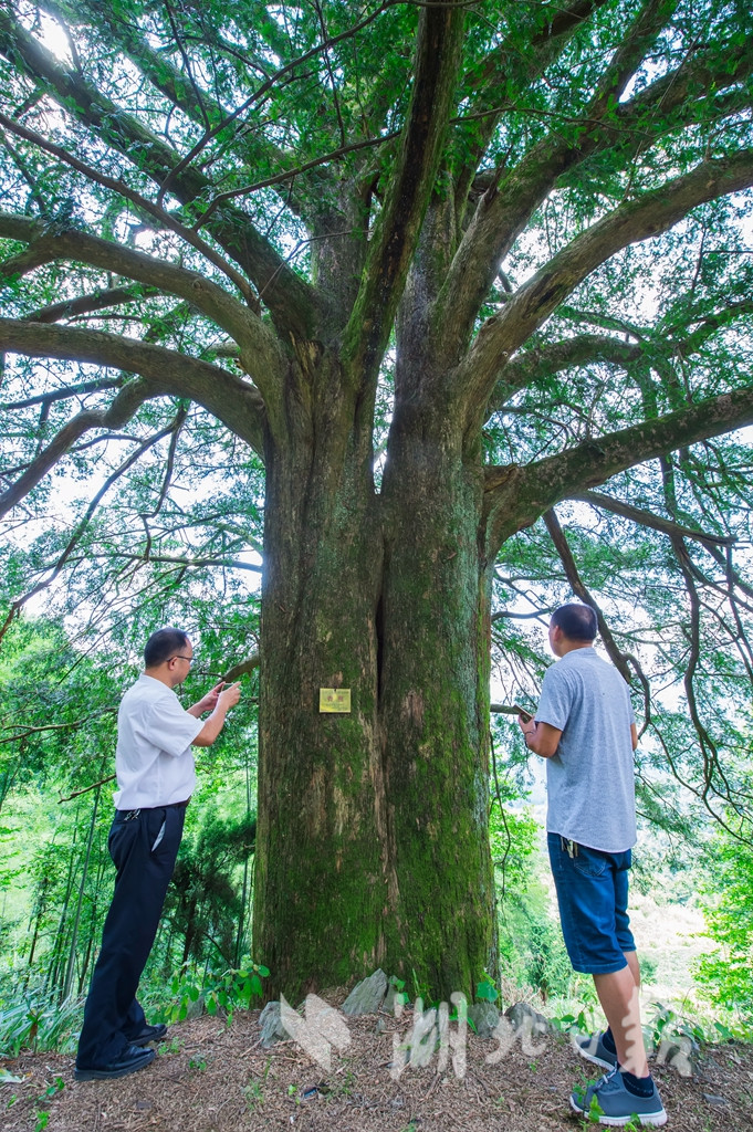 這兩棵古香榧樹生長在海拔約480多米的深山中。