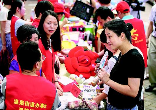 8月22日,咸寧市咸安區(qū)溫泉街雙鶴橋社區(qū)聯(lián)合8個單位的64名黨員志愿者,開展“黨員在行動、助力學(xué)子夢”愛心義賣活動,號召黨員志愿者們將家中的閑置物品拿出來義賣,用于資助困難大學(xué)生。當天活動中,志愿者們賣出物品300余件,籌得愛心款共計13650元,全部現(xiàn)場捐給8名困難大學(xué)生。