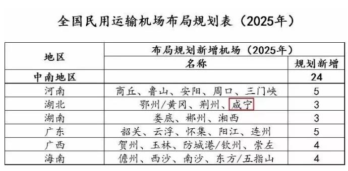 此前發(fā)布的《中國(guó)民用航空發(fā)展第十三個(gè)五年規(guī)劃》中,湖北省有兩個(gè)新建機(jī)場(chǎng)項(xiàng)目,分別是荊州、鄂州/黃岡機(jī)場(chǎng),此次,咸寧機(jī)場(chǎng)成功擠入支線機(jī)場(chǎng)建設(shè)規(guī)劃。