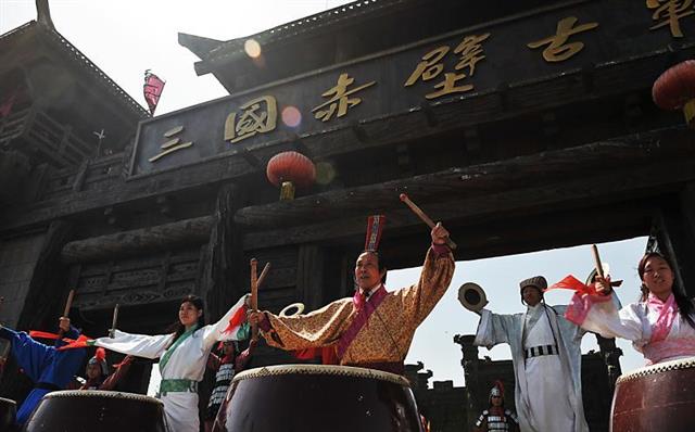 赤壁古戰(zhàn)場景區(qū)位于長江中游南岸的赤壁市。景區(qū)內(nèi)古戰(zhàn)場遺址與仿漢代建筑群渾然一體,主要景點有赤壁摩崖石刻、周瑜雕像、拜風(fēng)臺、鳳雛庵等數(shù)十處人文景觀。該景區(qū)2008年成為4A景區(qū),2013年向5A沖刺。