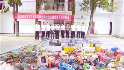 合力“嚴(yán)管”形成高壓。7月中旬以來(lái),組織執(zhí)法行動(dòng)211次,出動(dòng)執(zhí)法船艇和車(chē)輛230臺(tái)次,參與執(zhí)法人員1031人次,現(xiàn)場(chǎng)查獲并銷(xiāo)毀各類(lèi)非法漁具632套、違法電捕設(shè)備21臺(tái)(套),查扣非法捕撈漁船2 艘,行政處罰54人,行政罰款1.4萬(wàn)元,批評(píng)教育300余人,刑事立案1起,形成了有效震懾。