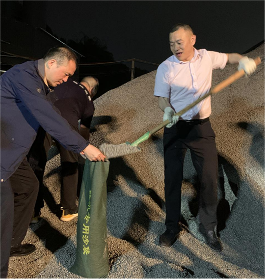 應急管理局黨委書記曾偉、局長何榮齊上陣,帶頭裝沙干勁足