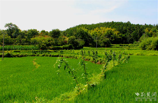 烈日下,放眼一片青綠,水稻正茁壯生長,田邊作業(yè)路寬闊平坦。不難想象,轉(zhuǎn)眼的秋天,這里將是滿畈金黃,一派收獲的景象。