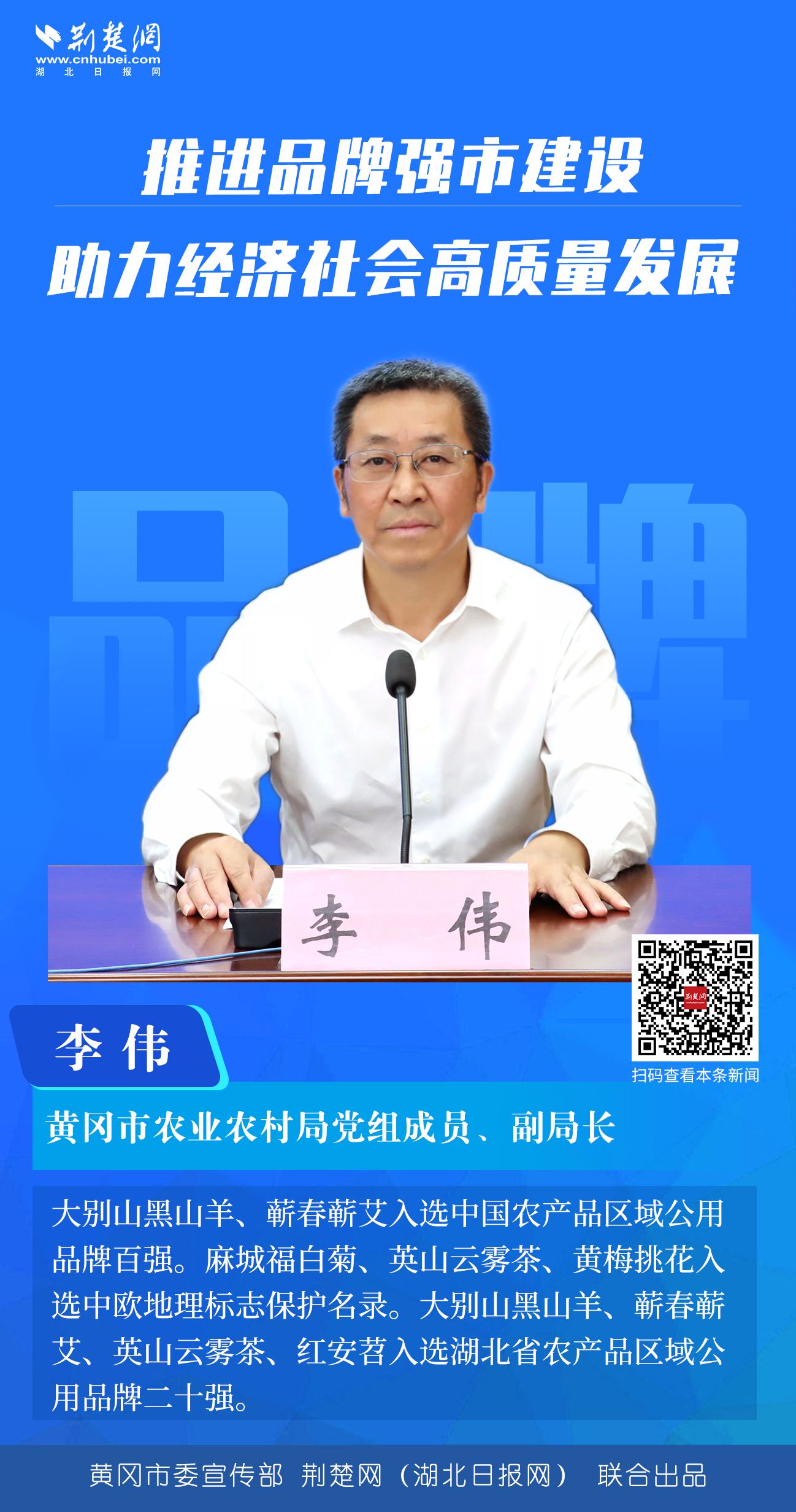 荊楚網(wǎng)(湖北日報網(wǎng))訊(通訊員郭斯)7月27日,黃岡舉辦推進品牌強市新聞發(fā)布會。會上,黃岡市市場監(jiān)督管理局、市農(nóng)業(yè)農(nóng)村局、麻城市、英山縣、蘄春縣等單位相關(guān)負責人介紹2022年上半年全市商標品牌情況,商標和地理標志發(fā)展舉措、工作成效,并就有關(guān)問題答記者問。
