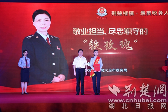 荊楚網(wǎng)(湖北日報網(wǎng))訊(通訊員 劉合儒)8月2日,興稅強國 擔(dān)當(dāng)有“鄂”——“2022年荊楚楷?!ぷ蠲蓝悇?wù)人”發(fā)布儀式在武漢舉行。大冶市稅務(wù)局郭細梅因其“敬業(yè)擔(dān)當(dāng)、盡忠職守”被評為“2022年荊楚楷?!ぷ蠲蓝悇?wù)人”。