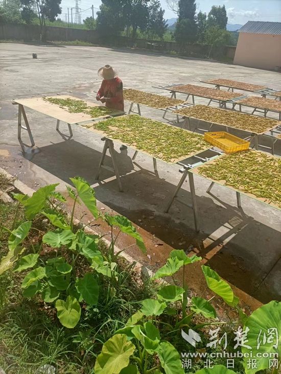 “將采摘回來的黃花攤曬,這活挺簡單,也不是很累。干一天,還能掙個90塊錢?!笨录毴葸肿斓溃裎覀冇譀]有什么知識技能,能在家門口打工掙錢,為家庭減輕點生活壓力,還是挺知足的!和我一樣,在基地打工掙錢的農(nóng)村婦女有20多人嘞!