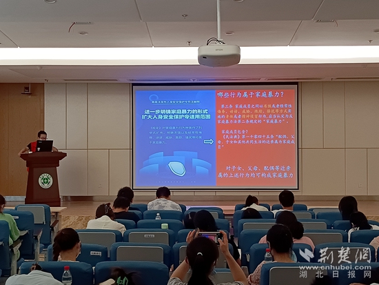 當天,黃石港區(qū)司法局特邀湖北風勁律師事務所宋丞律師,重點圍繞民法典的婚姻家庭編進行了宣講。
