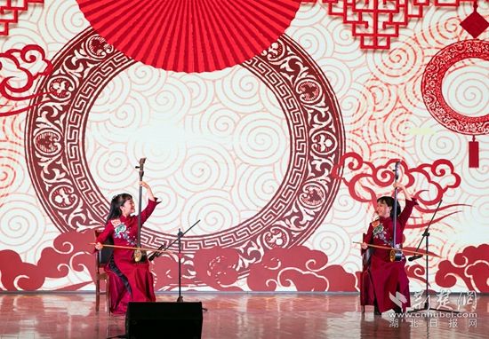 值得一提的是,作為非遺藝術(shù)的單弦拉戲首次納入文藝宣講節(jié)目,僅以一弓一弦模仿京、漢、楚、黃梅調(diào)等各種行當(dāng)?shù)某?,一曲《戲曲?lián)奏》演繹得惟妙惟肖、妙趣橫生。
