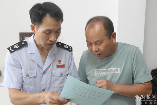鄂州市梁子湖區(qū)稅務(wù)局副局長(zhǎng)萬(wàn)國(guó)浩、紀(jì)檢組組長(zhǎng)萬(wàn)旻現(xiàn)場(chǎng)為企業(yè)送上《納稅風(fēng)險(xiǎn)“健康篩查”報(bào)告單》。通訊員 供圖