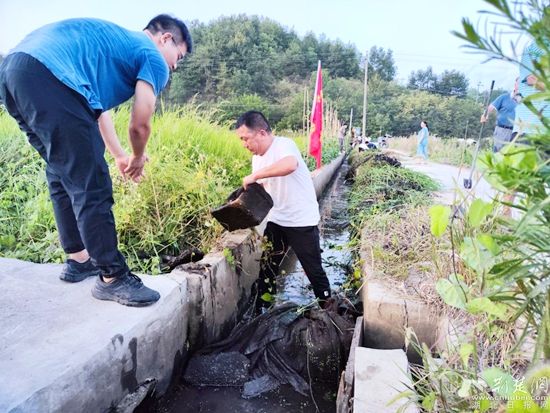 8月15日,窯上咀村窯魯大畈人頭攢動,在鎮(zhèn)黨委的組織下,由3個支部的黨員、群眾組成的清渠專班正配合著挖掘機施工作業(yè)。“群眾需要什么,我們黨員就干什么?!秉h員郭亞榮說。大家手揮舞著鐮刀、鋤頭、鐵鍬、鋼叉等農具,割草、清溝、排淤、除沙分工有序、各司其責。
