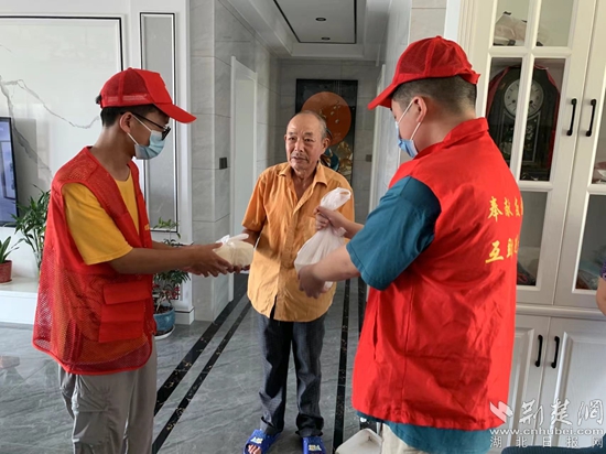“戴奶奶,我們送飯來(lái)了!”“劉叔叔,飯菜還是熱的,您記得趁熱吃哦!”鄂州市燕磯中學(xué)志愿者們?yōu)檫€建房小區(qū)行動(dòng)不便的老人送“愛(ài)心午餐”,兩位老人激動(dòng)不已,連聲道謝,社區(qū)居民紛紛點(diǎn)贊。