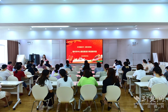荊楚網(wǎng)(湖北日?qǐng)?bào)網(wǎng))訊(通訊員 何海燕、潘?。凹绎L(fēng)連國(guó)風(fēng),國(guó)風(fēng)興家風(fēng),仁義禮智信,千年傳美德……”9月7日下午,鄂州市中心醫(yī)院家庭文明道德講堂唱響《中華好家風(fēng)》,各婦女分會(huì)主任和女工組長(zhǎng)共50余人參會(huì)。