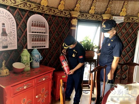 期間,檢查組一行詳細(xì)對(duì)使用燃?xì)獾母黝惒惋媹鏊欠袢〉萌細(xì)饨?jīng)營許可證,廚房與其他部位防火分隔,是否使用燃?xì)鈭?bào)警器,燃?xì)庠O(shè)備、管線設(shè)置和維護(hù)等情況進(jìn)行檢查,并重點(diǎn)就燃?xì)廛浌苁欠翊嬖诟g、老化現(xiàn)象、廚房電氣線路敷設(shè)、油煙管道是否定期清理等情況進(jìn)行查看。同時(shí),還向餐飲工作人員講解燃?xì)獾氖褂靡?guī)范、檢漏方法、泄漏的應(yīng)急措施及逃生與自救。