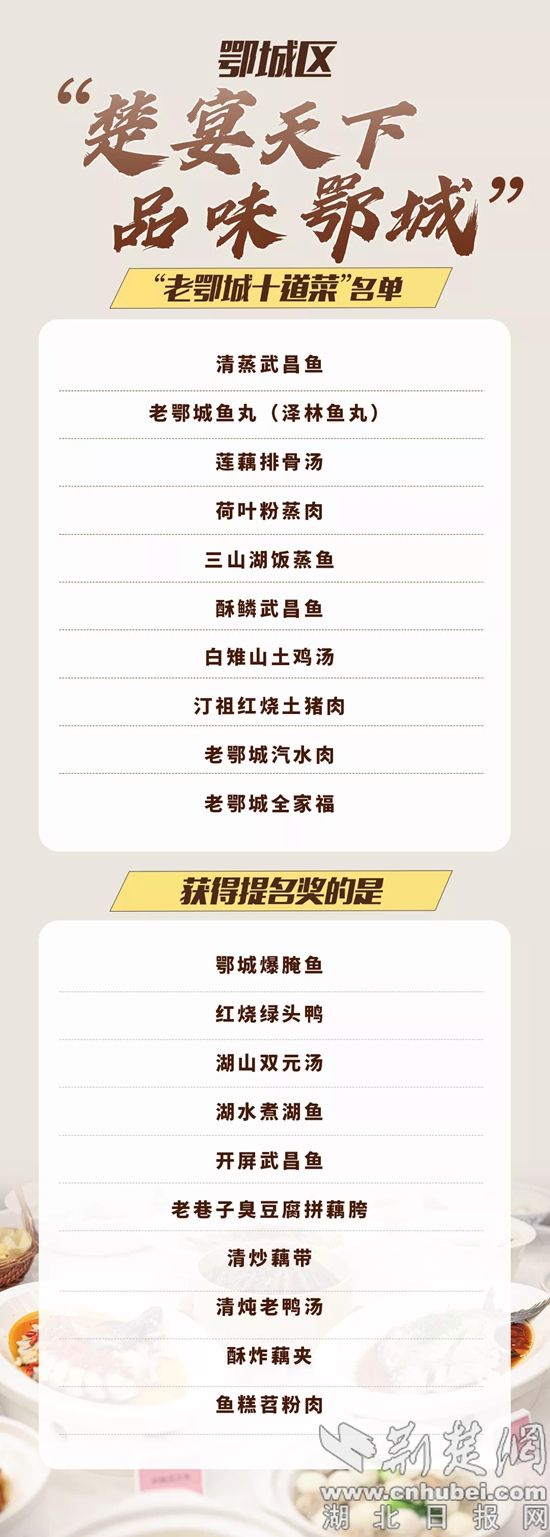 鄂城區(qū)首屆“十大農(nóng)家樂(lè)”名單及鄂城區(qū)“楚宴天,品味鄂城”“老鄂城十道菜”名單如下: