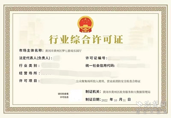 荊楚網(wǎng)(湖北日報網(wǎng))訊(通訊員 王軍樂 徐普查)11月1日,黃岡市黃州區(qū)消防救援大隊為黃州區(qū)夢七游戲樂園廳辦理第一張“一業(yè)一證”行業(yè)綜合許可證,標志著“一證準營”新模式全面啟動。