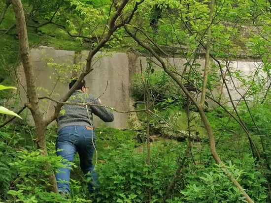 只見江邊怪石嶙峋、樹木蒼翠,左邊是江水,右邊是一面懸崖峭壁。“石刻就在這個峭壁上面,沒有路,只能踩著江邊這些石頭上去,很危險,安全考慮要不還是算了。”村干部猶豫道。