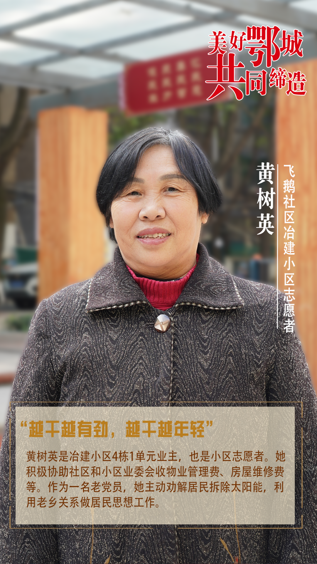 黃樹英是冶建小區(qū)4棟1單元業(yè)主,也是小區(qū)志愿者。她積極協(xié)助社區(qū)和小區(qū)業(yè)委會收物業(yè)管理費、房屋維修費等。作為一名老黨員,她主動勸解居民拆除太陽能,利用老鄉(xiāng)關(guān)系做居民思想工作。