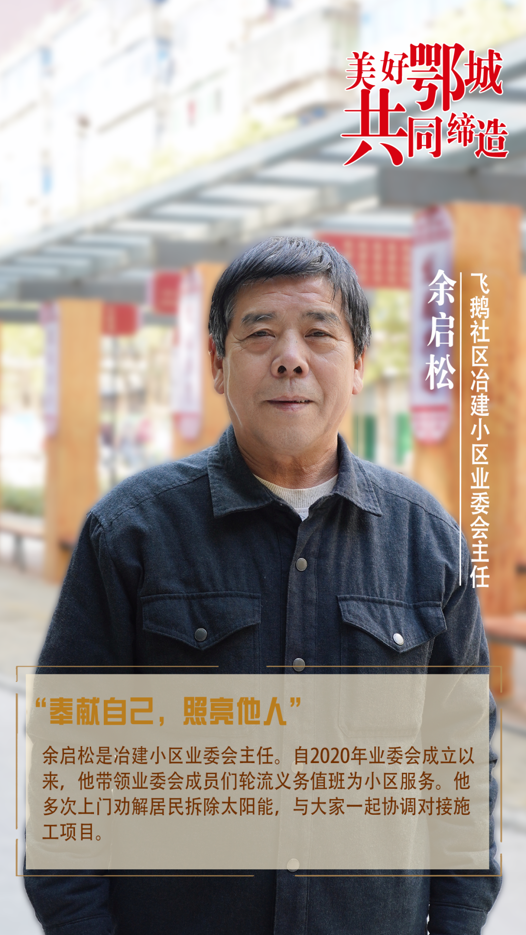余啟松是冶建小區(qū)業(yè)委會主任。自2020年業(yè)委會成立以來,他帶領(lǐng)業(yè)委會成員們輪流義務(wù)值班為小區(qū)服務(wù)。他多次上門勸解居民拆除太陽能,與大家一起協(xié)調(diào)對接施工項目。