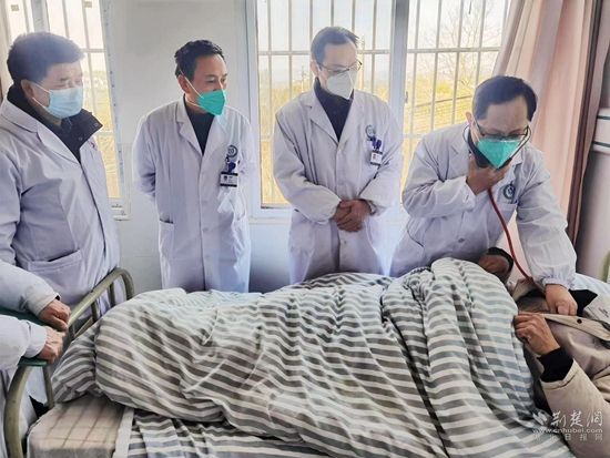 荊楚網(wǎng)(湖北日報網(wǎng))訊(通訊員程曉林 李 勇 饒國?。?/strong>1月6日下午4時10分,在浠水縣綠楊鄉(xiāng)衛(wèi)生院三樓住院部病房里,浠水縣人民醫(yī)院副院長、主任醫(yī)師黃大雄帶領該院第5醫(yī)療救治專家組主任醫(yī)師付鴻鷹、副主任醫(yī)師柴小利同綠楊衛(wèi)生院醫(yī)務人員一起,給82歲的新冠感染患者張鳳銀婆婆進行會診。