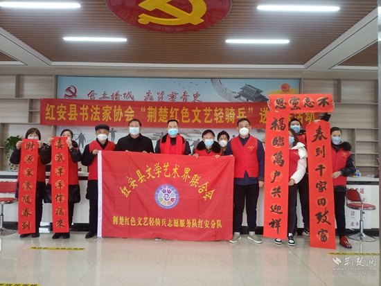 荊楚網(wǎng)(湖北日?qǐng)?bào)網(wǎng))訊(通訊員毛紅平 李紫文)1月13日,紅安縣新時(shí)代文明實(shí)踐中心、紅安縣文聯(lián)組織縣書法家協(xié)會(huì)“荊楚紅色文藝輕騎兵”開展一年一度的送春聯(lián)、送祝?;顒?dòng),到杏花鄉(xiāng)培城社區(qū)為居民群眾免費(fèi)書寫春聯(lián)200余副,福字80余張,傳遞黨和政府的關(guān)懷與溫暖。