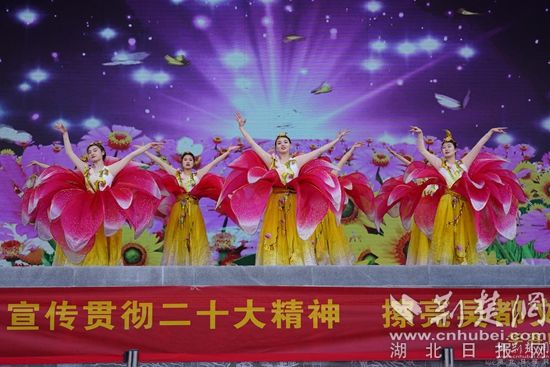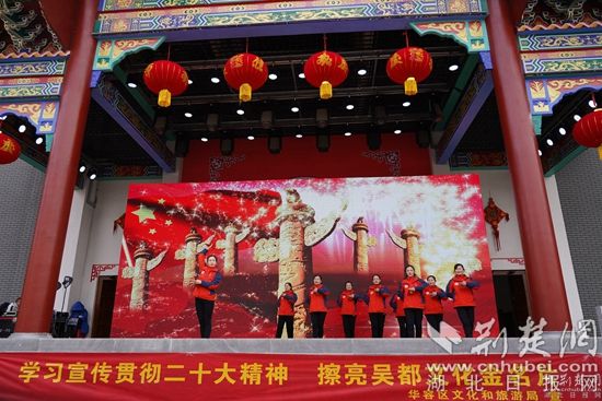 新春廟會將黨的二十大宣講、文藝演出與民俗表演相結(jié)合,開場舞蹈《荊楚歡歌》、湖北大鼓《二十大精神放光芒》、詩朗誦《航程》、反串《長袖舞》、男聲獨唱《我和我的祖國》等文藝節(jié)目和傳統(tǒng)的舞獅、雜技、魔術(shù)等老百姓喜聞樂見的表演在廟會現(xiàn)場輪番上演。