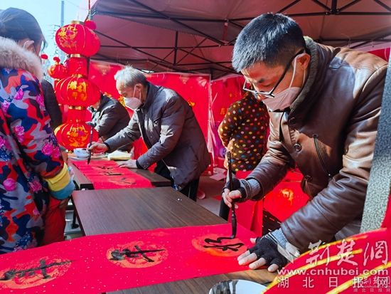 現(xiàn)場寫、送對聯(lián)。通訊員 供圖