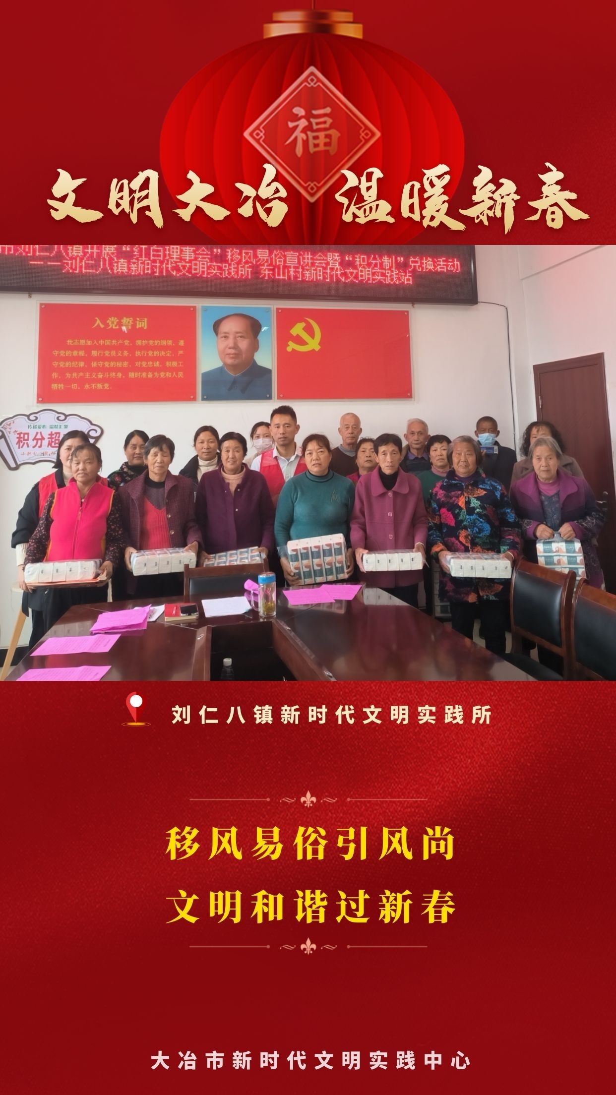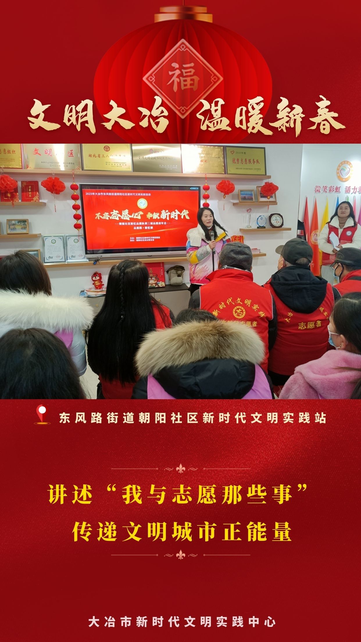 連日來,大冶市新時(shí)代文明實(shí)踐中心(所、站)以精彩紛呈的志愿服務(wù)為載體,組織開展豐富多彩的文明實(shí)踐主題活動(dòng),為廣大群眾送去滿滿的關(guān)懷,同時(shí)把宣傳黨的二十大精神和培育踐行主流價(jià)值、持續(xù)深入移風(fēng)易俗等內(nèi)容貫穿始終。