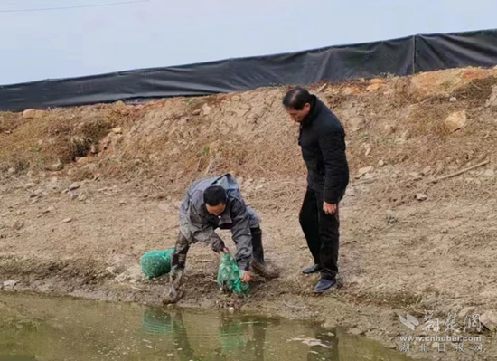 “立春前一天,正是蟹苗投放的最佳時機,清塘、消毒、投苗,一步都不容忽視!你們看,這些背殼有光澤、顏色為青灰色、大小統(tǒng)一的就是精品長腿五母蟹苗了。”茅山村“兩委”主動對接的江蘇高淳專業(yè)養(yǎng)蟹技術(shù)人員翻動著蟹苗向大家介紹道。