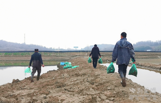 荊楚網(wǎng)(湖北日報網(wǎng))訊(通訊員 李論 李雅琴)春投一簍苗,秋收萬斤蟹。2月3日,蘄春縣彭思鎮(zhèn)茅山“觀蟹亭”螃蟹基地呈現(xiàn)一派歡聲笑語的忙碌景象。養(yǎng)殖戶伍師傅一家一大早就等候在向陽湖邊,趕著搶抓晴好天氣,給十萬尾優(yōu)質(zhì)蟹苗“喜遷”新居。