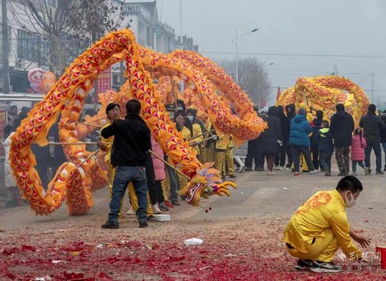 荊楚網(wǎng)(湖北日報網(wǎng))訊(通訊員 董劍橋 陳鈺)2月5日,蘄春縣金龍鬧元宵巡游活動拉開序幕,由橫車鎮(zhèn)界嶺村民自發(fā)組織的三條舞龍隊伍敲鑼打鼓、踏歌起舞,整個小鎮(zhèn)人聲鼎沸、熱鬧非凡。