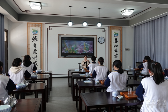 該課程在學(xué)生間頗受歡迎。據(jù)茶藝?yán)蠋焺⒂⒔榻B說(shuō),學(xué)校不僅開設(shè)了課程,而且還專門編修了一本《茶鄉(xiāng)茶香》的校本教材,每個(gè)從英山一中走出去的孩子都會(huì)掌握這門連接茶鄉(xiāng)與世界的技藝。