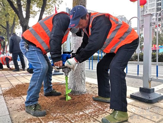 荊楚網(wǎng)(湖北日?qǐng)?bào)網(wǎng))訊(通訊員 鄭新華 陶晶晶 楊宏?。?/strong>“我們采購(gòu)了6臺(tái)打孔機(jī),可以把肥料直接送到樹木的根部,利于樹木直接吸收。當(dāng)夏季高溫季節(jié)來(lái)臨,可以通過(guò)插管給樹木灌水補(bǔ)充水分?!?月13日,麻城市金橋大道主干道,技術(shù)人員在推進(jìn)城市道路綠化提升工程現(xiàn)場(chǎng)作業(yè)時(shí)向筆者介紹。
